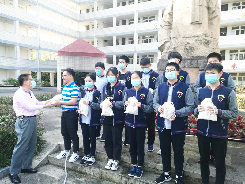 张建林副主任对学校防疫复学工作取得的成绩予以了充分肯定,对下一步学校防疫工作提出了希望与要求。接着,张副主任向师生代表送上爱心防疫包,并衷心祝愿鲁迅中学及全区中小学校,在区委区政府的坚强领导下,夺取“防疫、复学”双胜利。