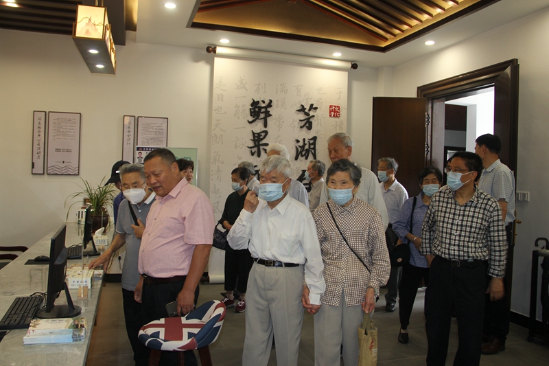 老领导一行首先考察兰亭街道谢家坞村,参观该村文化礼堂。该礼堂由中国美院团队设计,投入1000多万元,建筑面积2700平方米,是村里的文化地标。老领导们近距离了解“兰亭芳湖飞白鹭,谢家四季有鲜果”的现代化农业发展情况。
